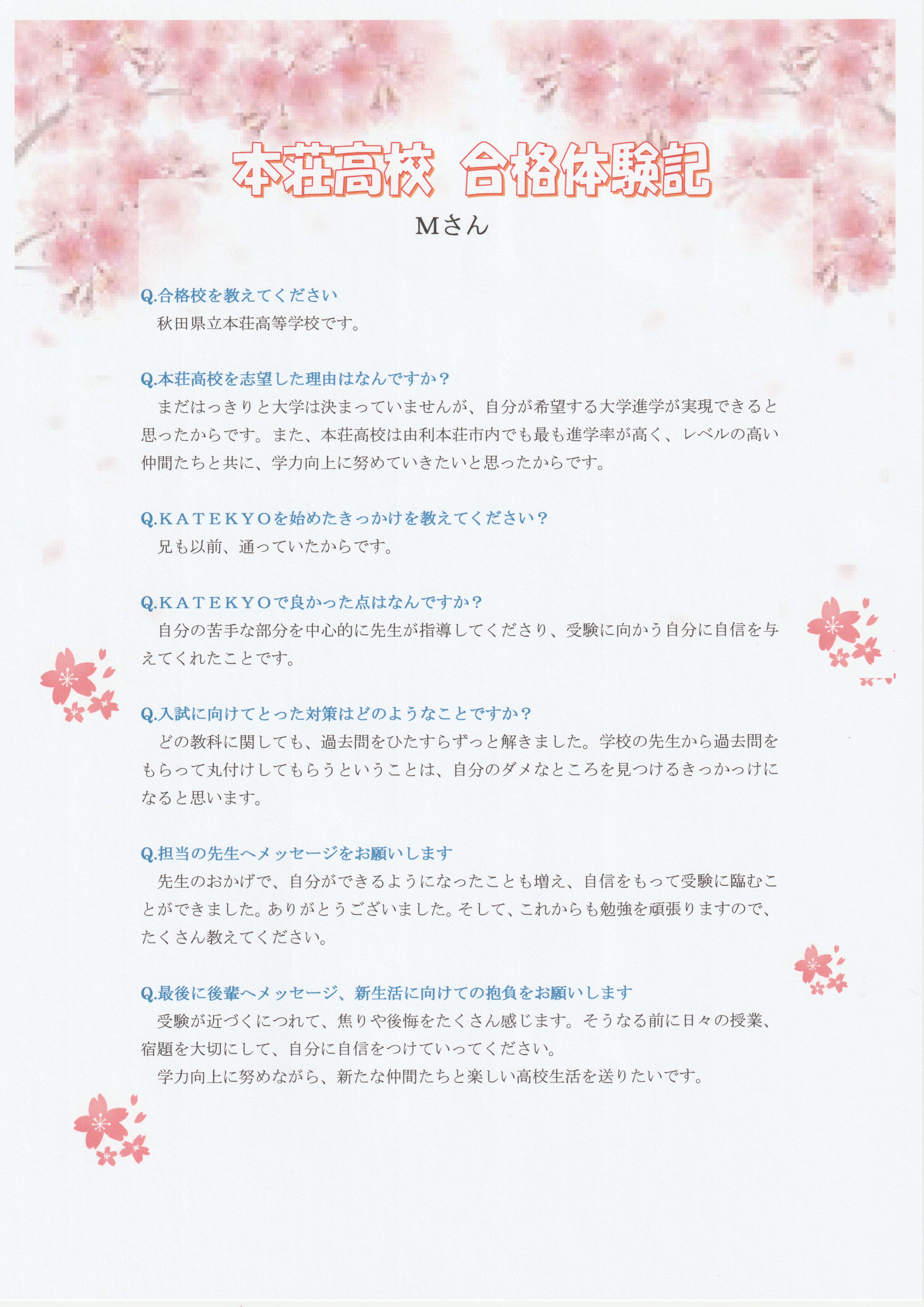 秋田駅前校 / 秋田土崎校 / 横手駅前校 大館校 / 能代校 / 大曲駅前校 / 本荘校 / 湯沢校