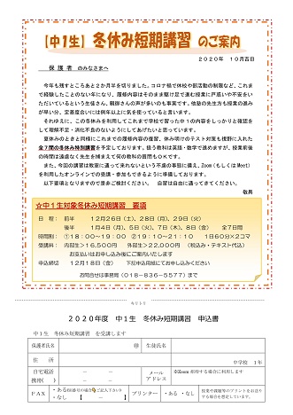 冬休み短期講習 👈案内の拡大はこちらクリックで