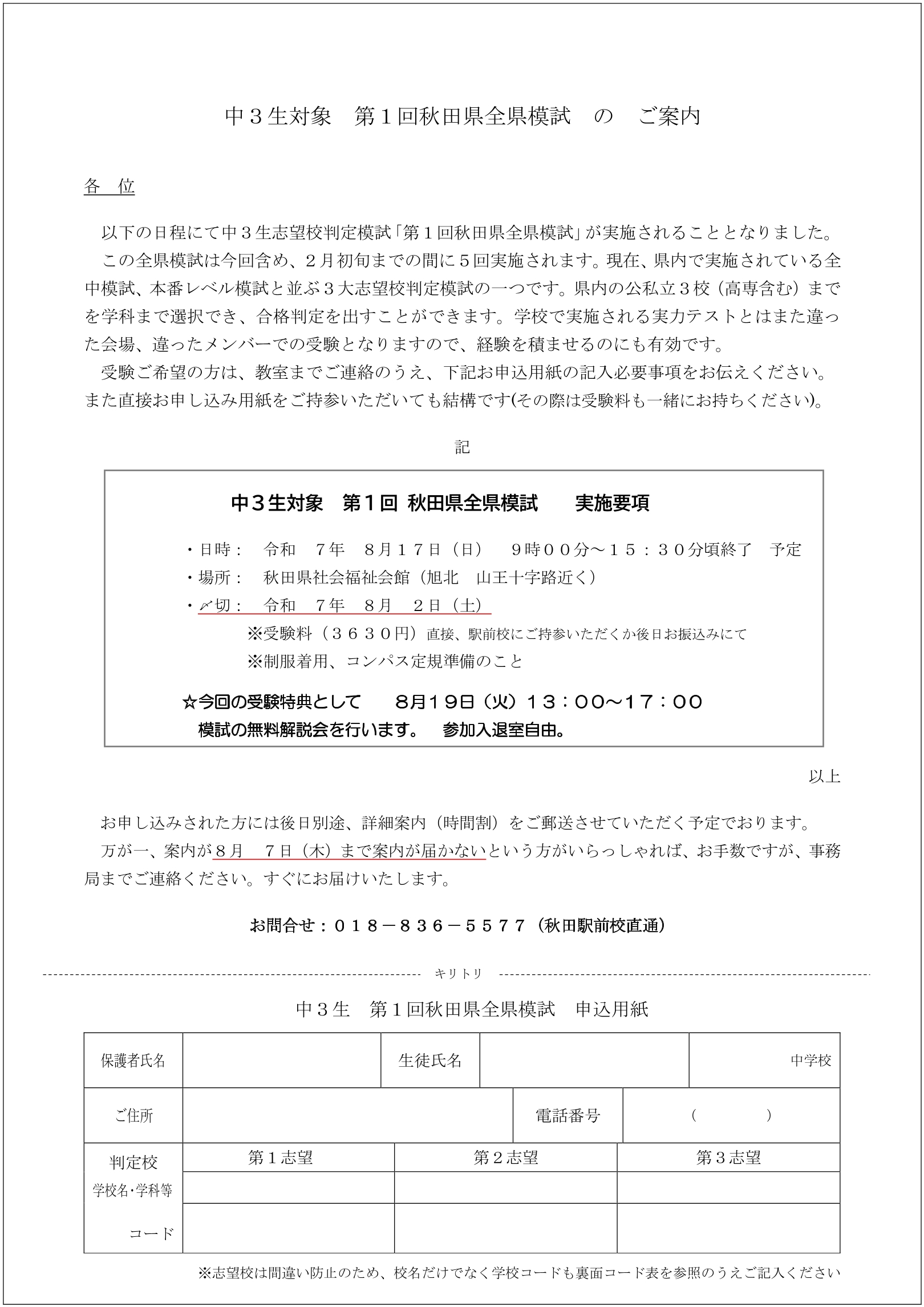 携帯電話からは、各教室・事務局にお電話ください