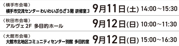 秋田駅前校 / 秋田土崎校 / 横手駅前校 大館校 / 能代校 / 大曲駅前校 / 本荘校 / 湯沢校