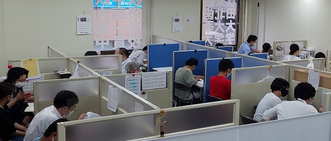 2021.8.10 夏休み毎日朝から授業や自習で生徒さん、先生方が教室に出入りしていますが、 ほぼ毎日時間帯によっては満席となります。 第1教室がいつも混みあっているので、自習は第2教室が意外と穴場です。 今日も13:00~15:00頃にかけて満席となり、 下足棚からスリッパが無くなっていました(;^_^A 過去のお知らせ一覧へ