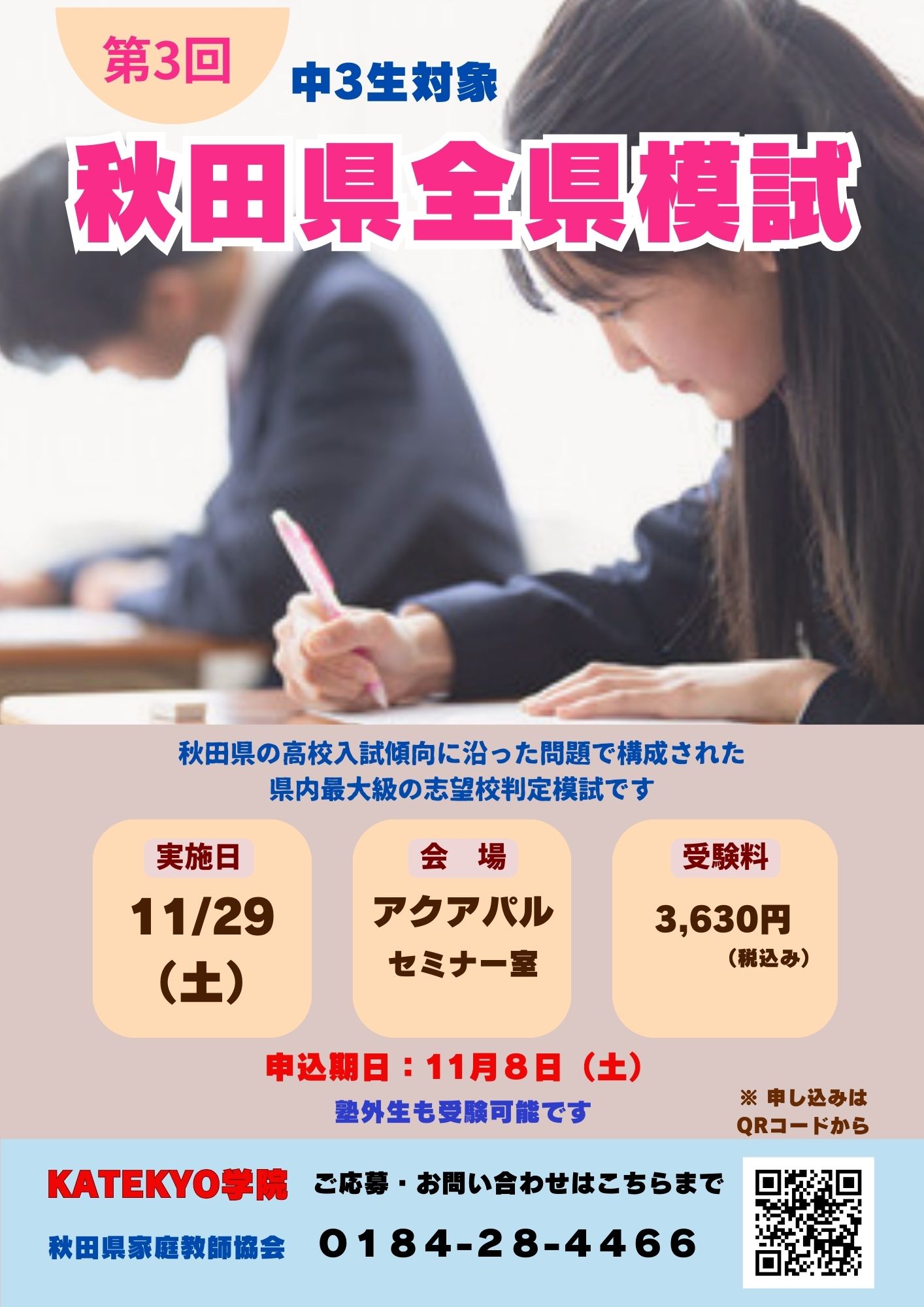 KATEKYO学院 本荘校 秋田県家庭教師協会 本荘事務局 TEL:0184-28-4466