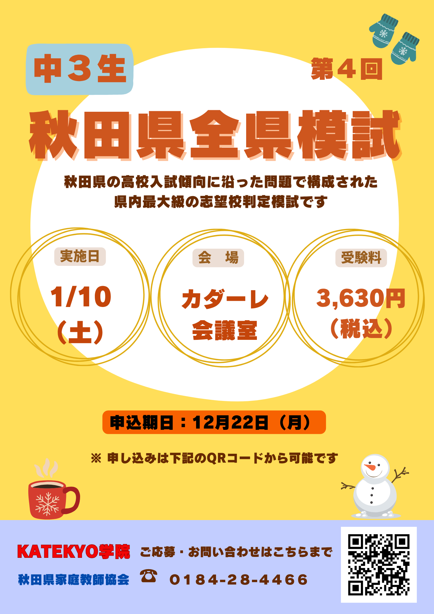 KATEKYO学院 本荘校 秋田県家庭教師協会 本荘事務局 TEL:0184-28-4466