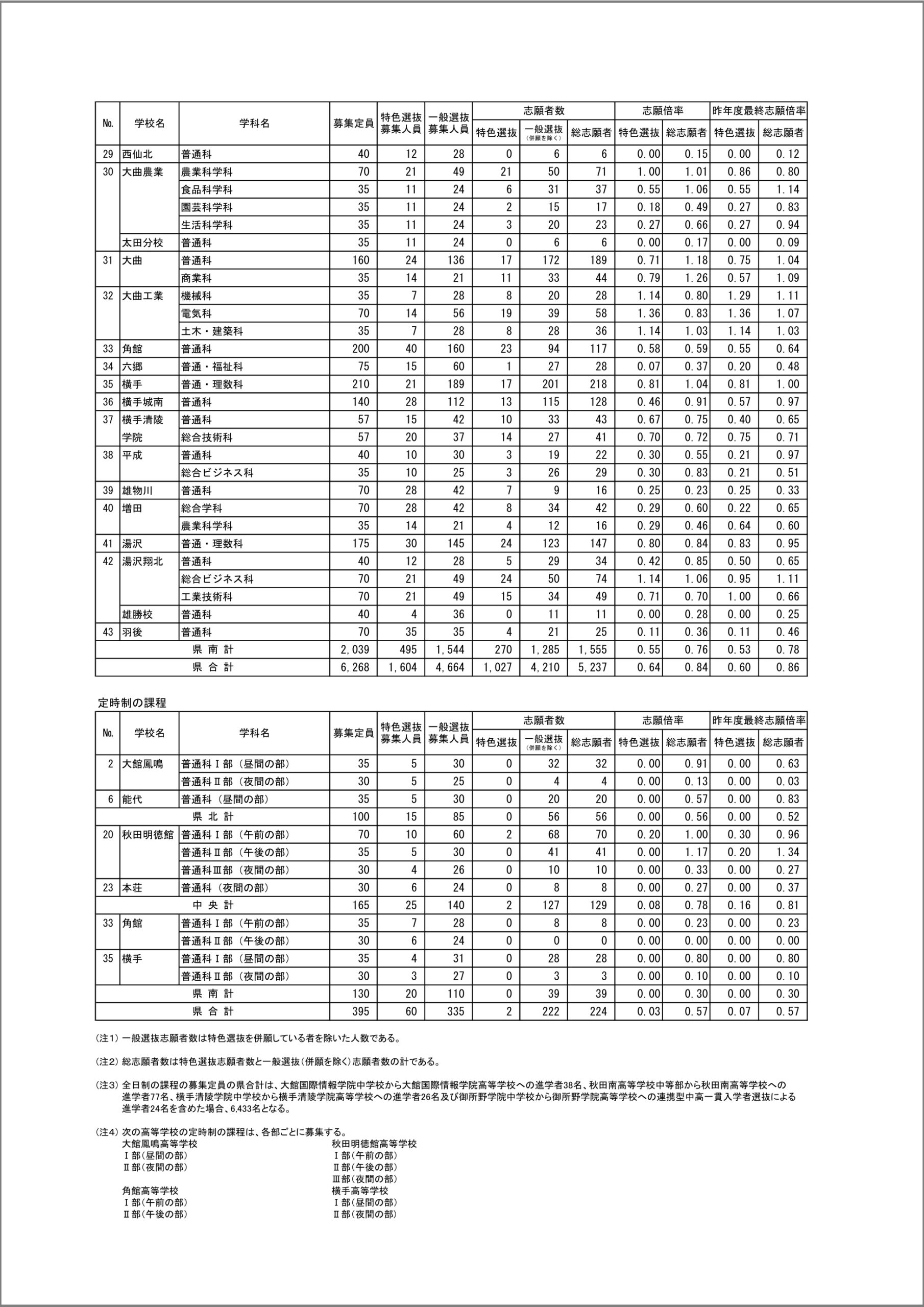 本日2月12日、令和8年度秋田県効率高等学校入学者選抜1次募集の志願先変更の受付も締め切られ、最終志願者倍率が決定しました。