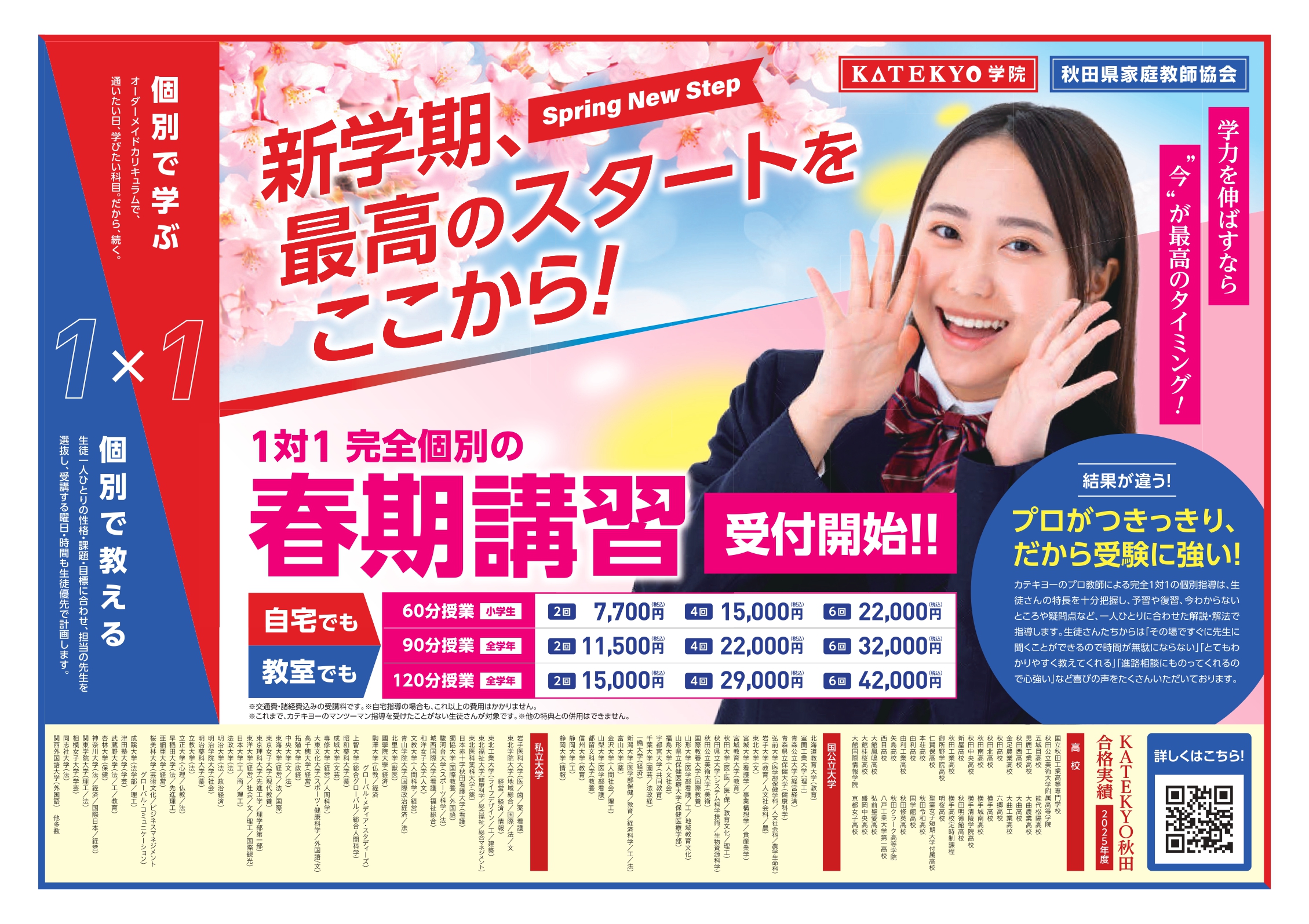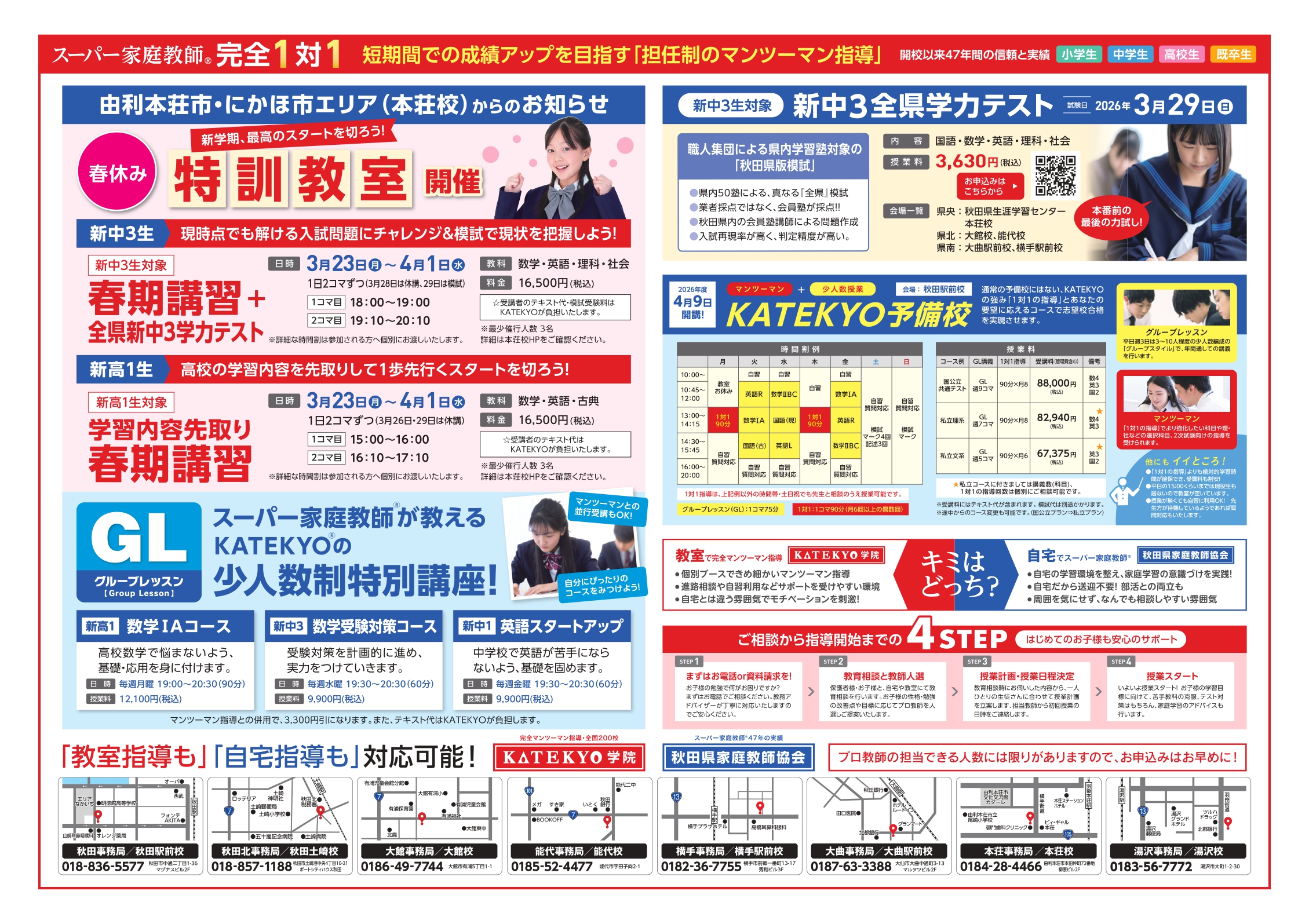 KATEKYO学院 本荘校 秋田県家庭教師協会 本荘事務局 TEL:0184-28-4466