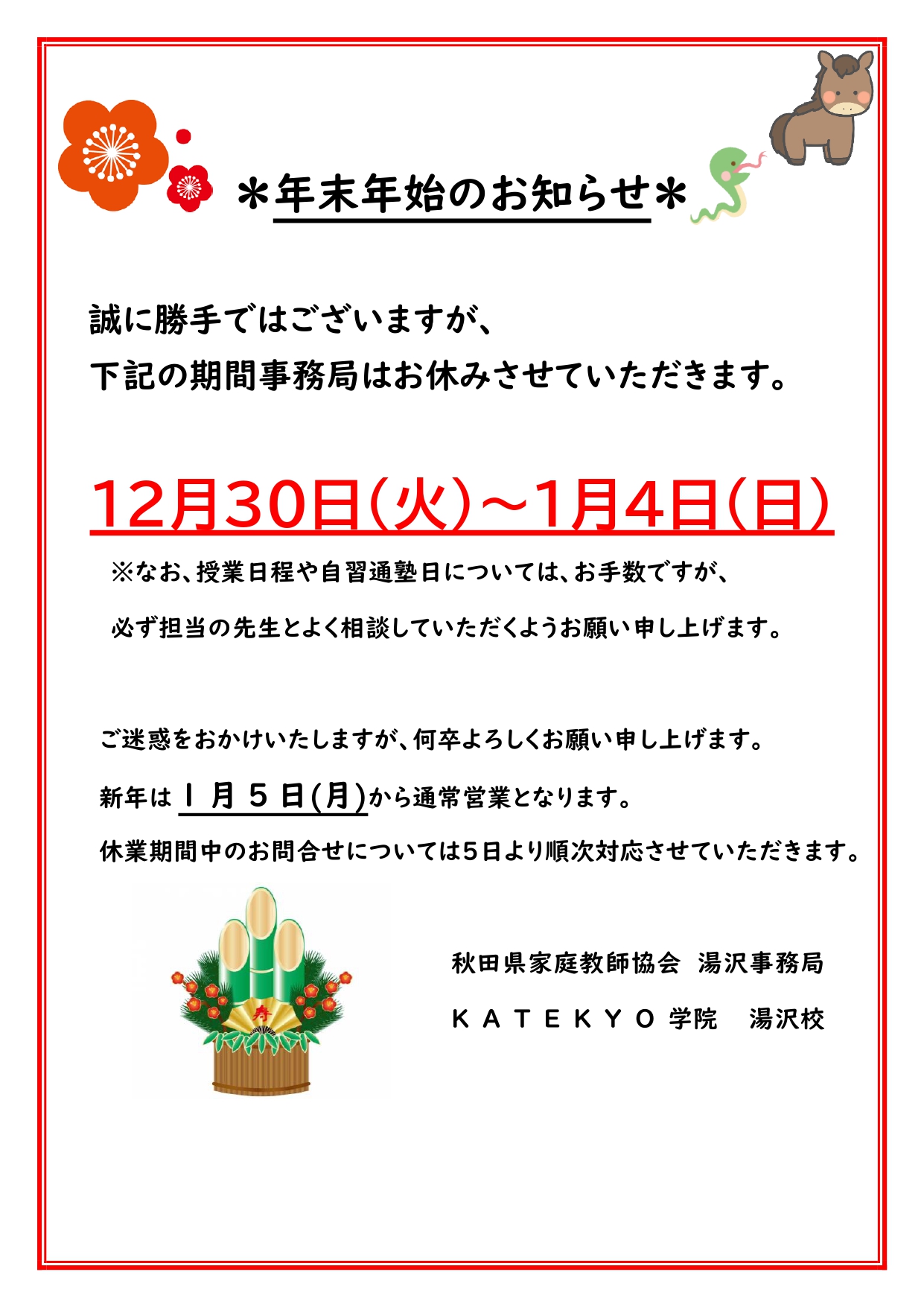 本年は格別のご愛顧を賜り厚く御礼申し上げます。 湯沢事務局は