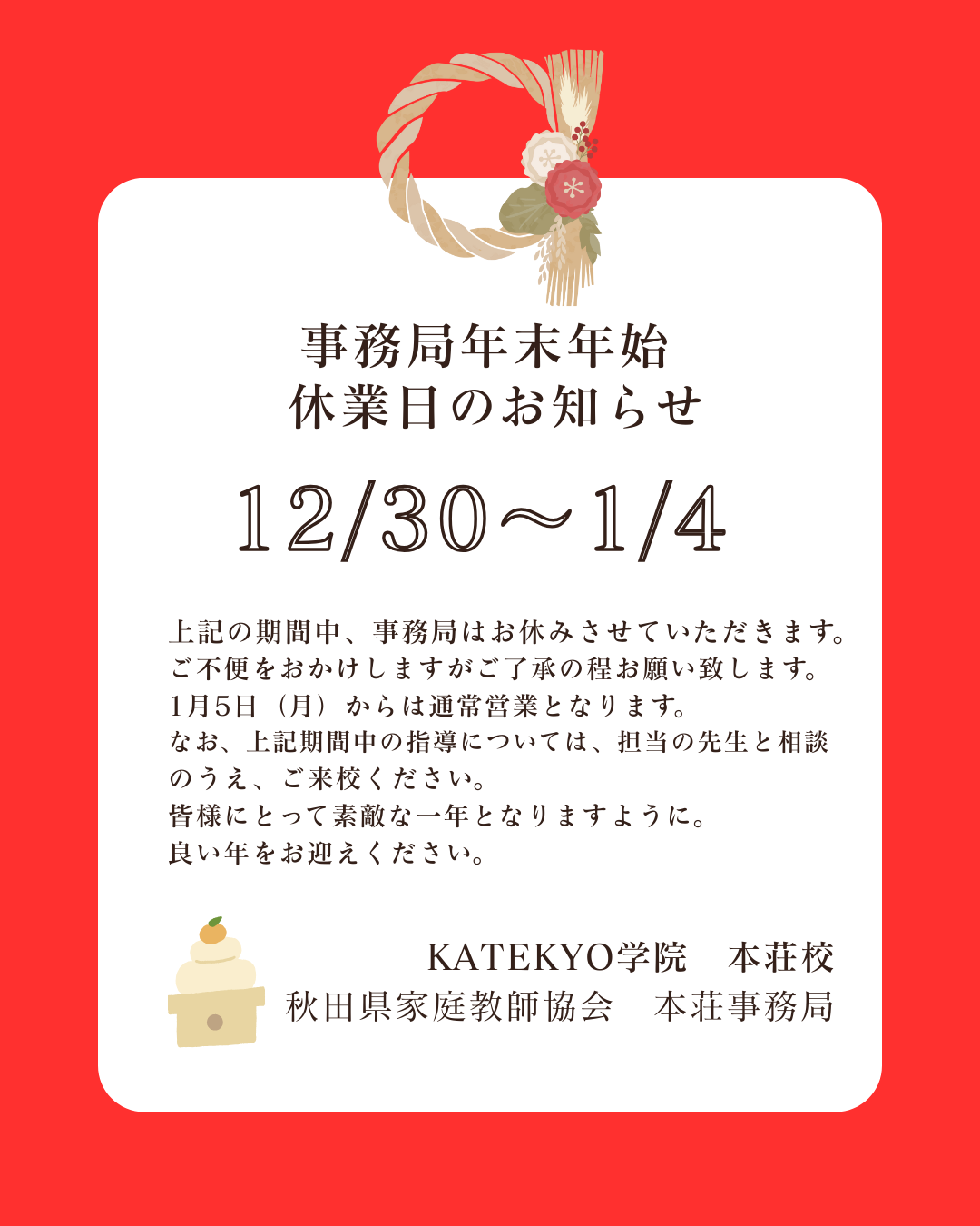 秋田駅前校 / 秋田土崎校 / 横手駅前校 大館校 / 能代校 / 大曲駅前校 / 本荘校 / 湯沢校