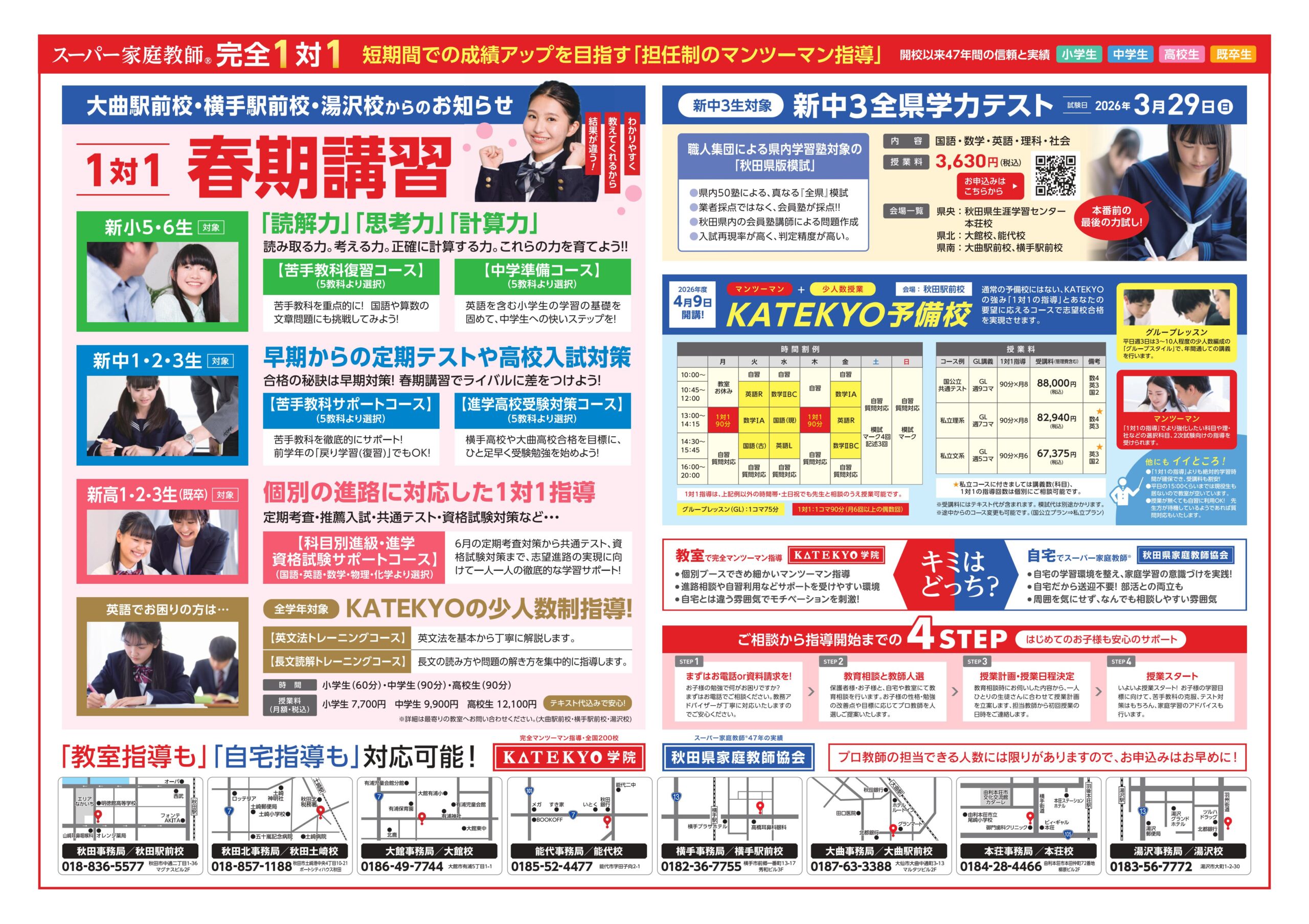 お申込み・お問い合わせはこちらまで → KATEKYO学院 大曲駅前校 (TEL 0187-63-3388)