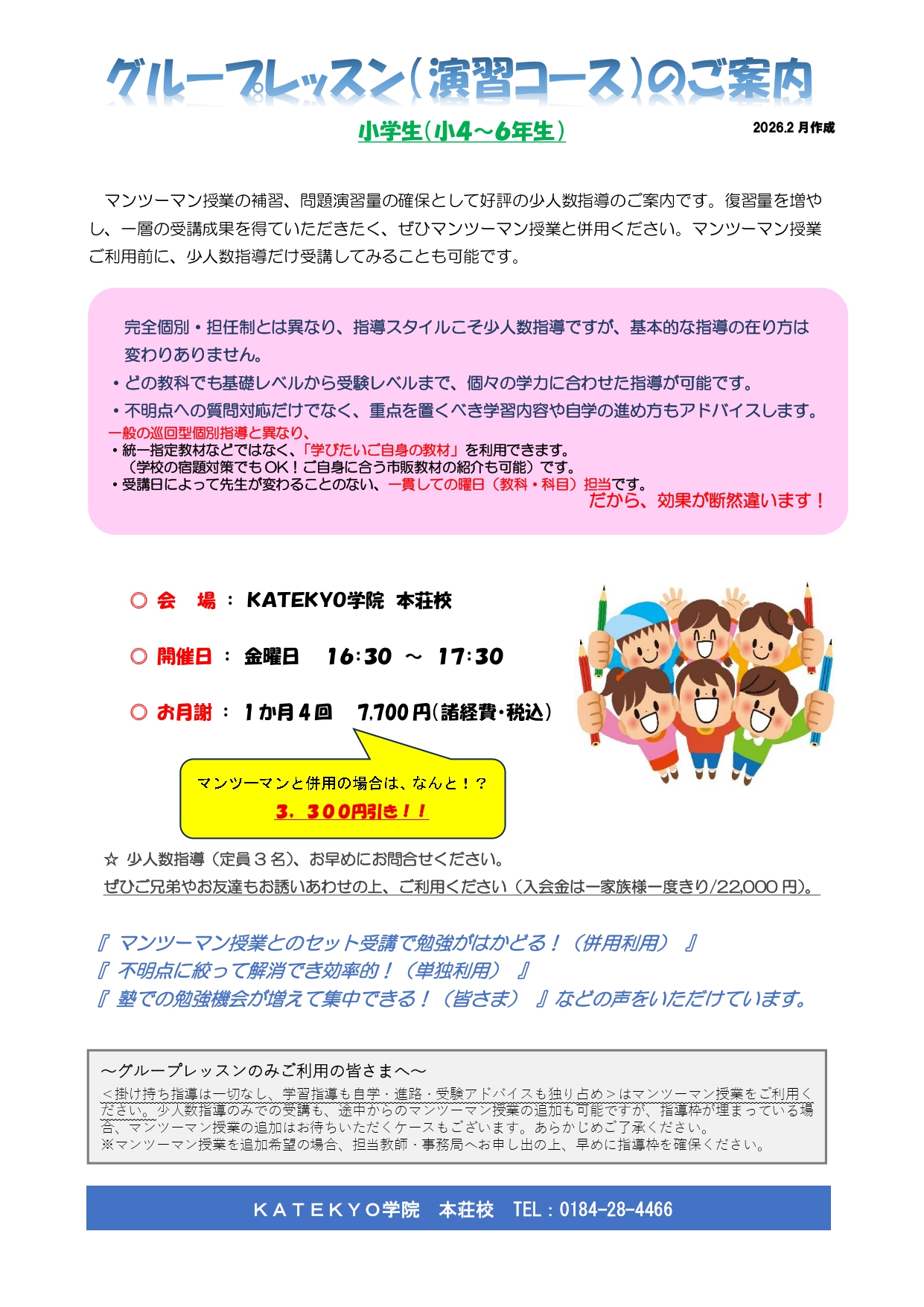 KATEKYO学院 本荘校 秋田県家庭教師協会 本荘事務局 TEL:0184-28-4466