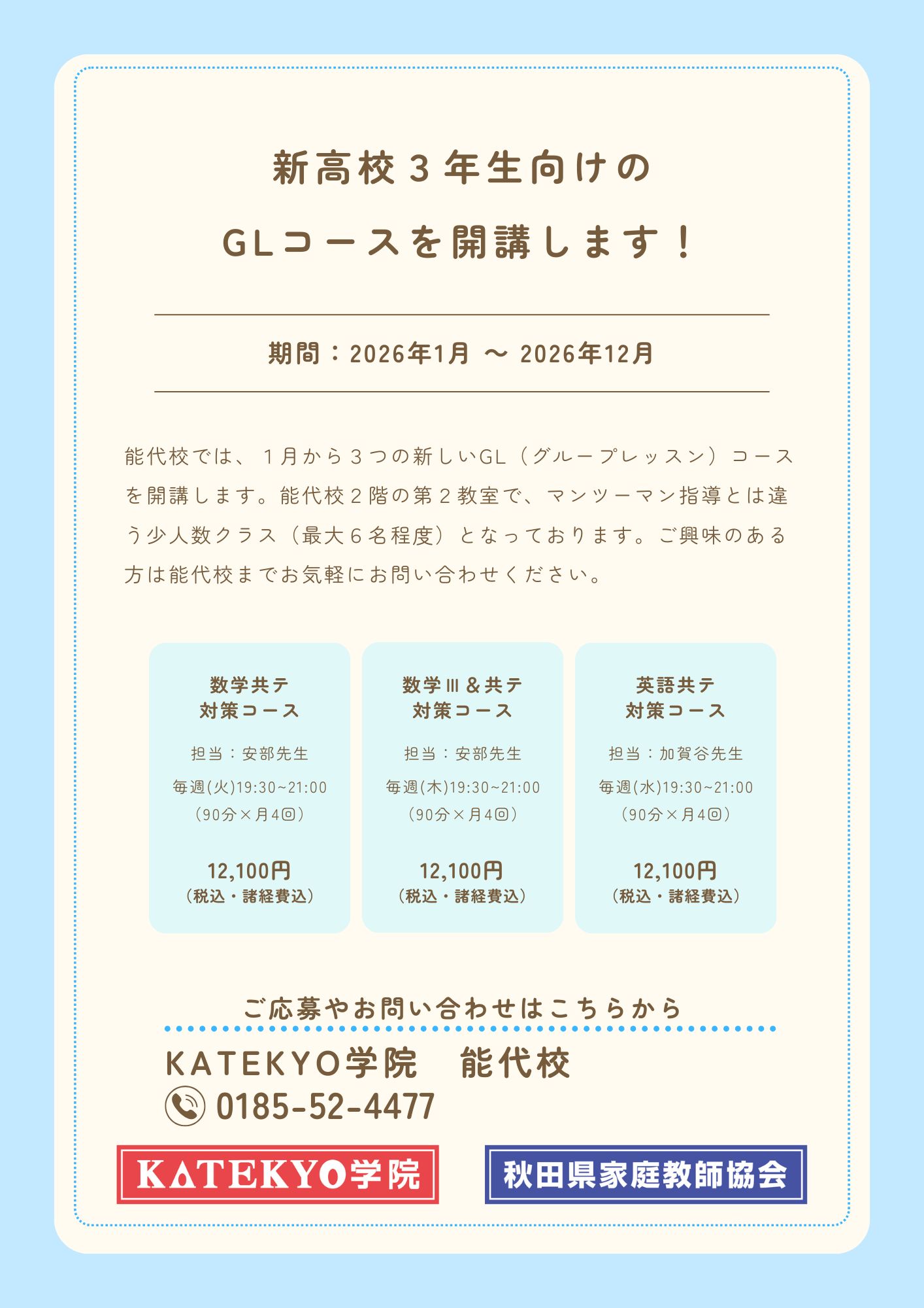 秋田駅前校 / 秋田土崎校 / 横手駅前校 大館校 / 能代校 / 大曲駅前校 / 本荘校 / 湯沢校