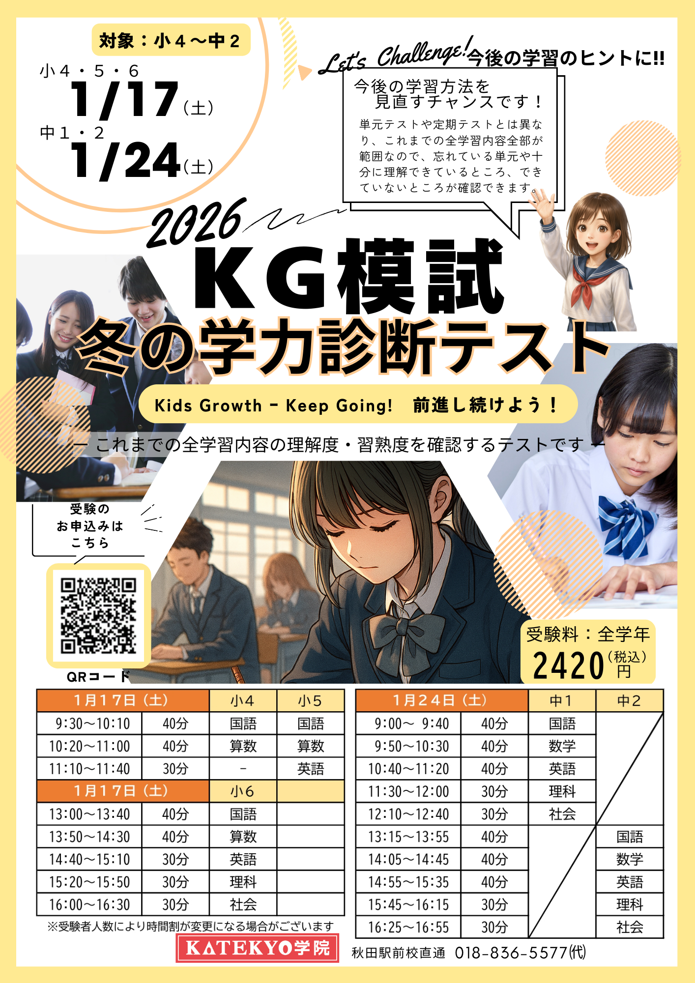 冬のKG模試(学力診断テスト)のお申し込みを受け付けております。